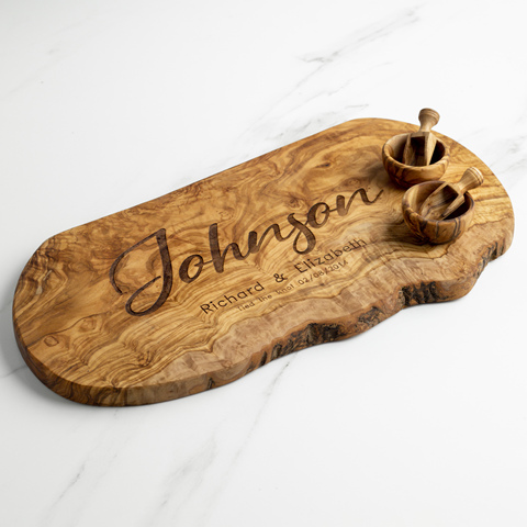 Placa De Corte De Madeira De Azeitona Personalizada Tábua De Corte Personalizada Handmade Serving Platter Bandeja De Queijo De Madeira Rústica Presente De Natal