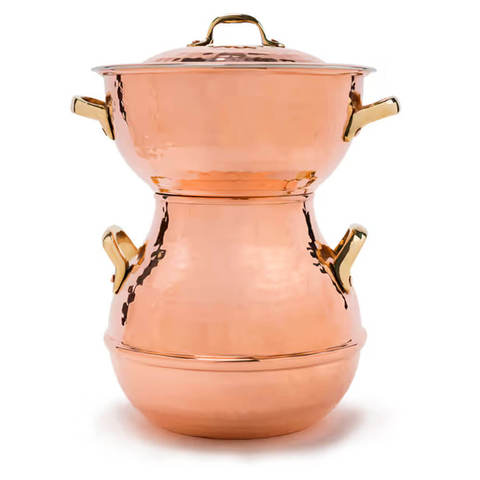 Mão martelado cobre Couscous Steamer Com Estanho Forro E Latão Alças