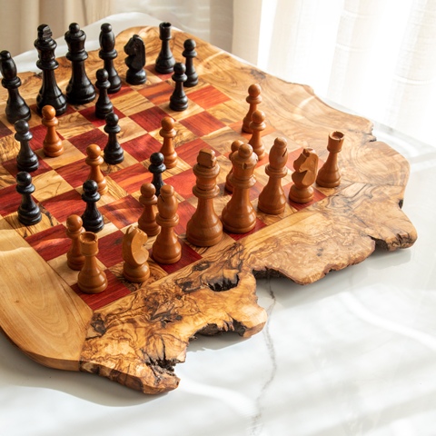 Jogo de xadrez de madeira feito à mão, conjunto de xadrez de madeira azeitona e bordas áspero: uma adição exclusiva ao seu jogo de tabuleiro de xadrez