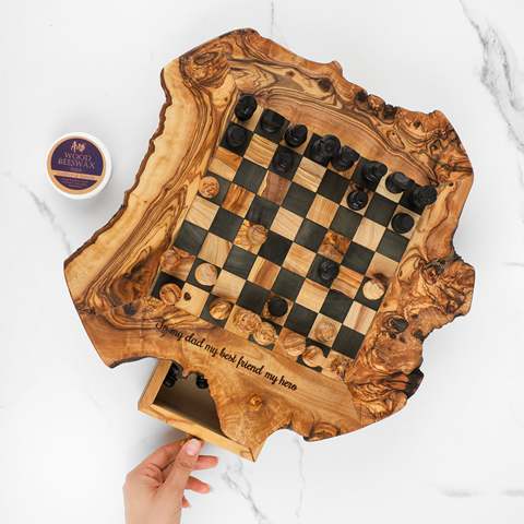ชุดหมากรุกไม้หรูหราทำด้วยมือพร้อมชิ้นไม้มะกอกและขอบหยาบ: นอกเหนือจากคอลเล็กชันเกมกระดานหมากรุกของคุณ