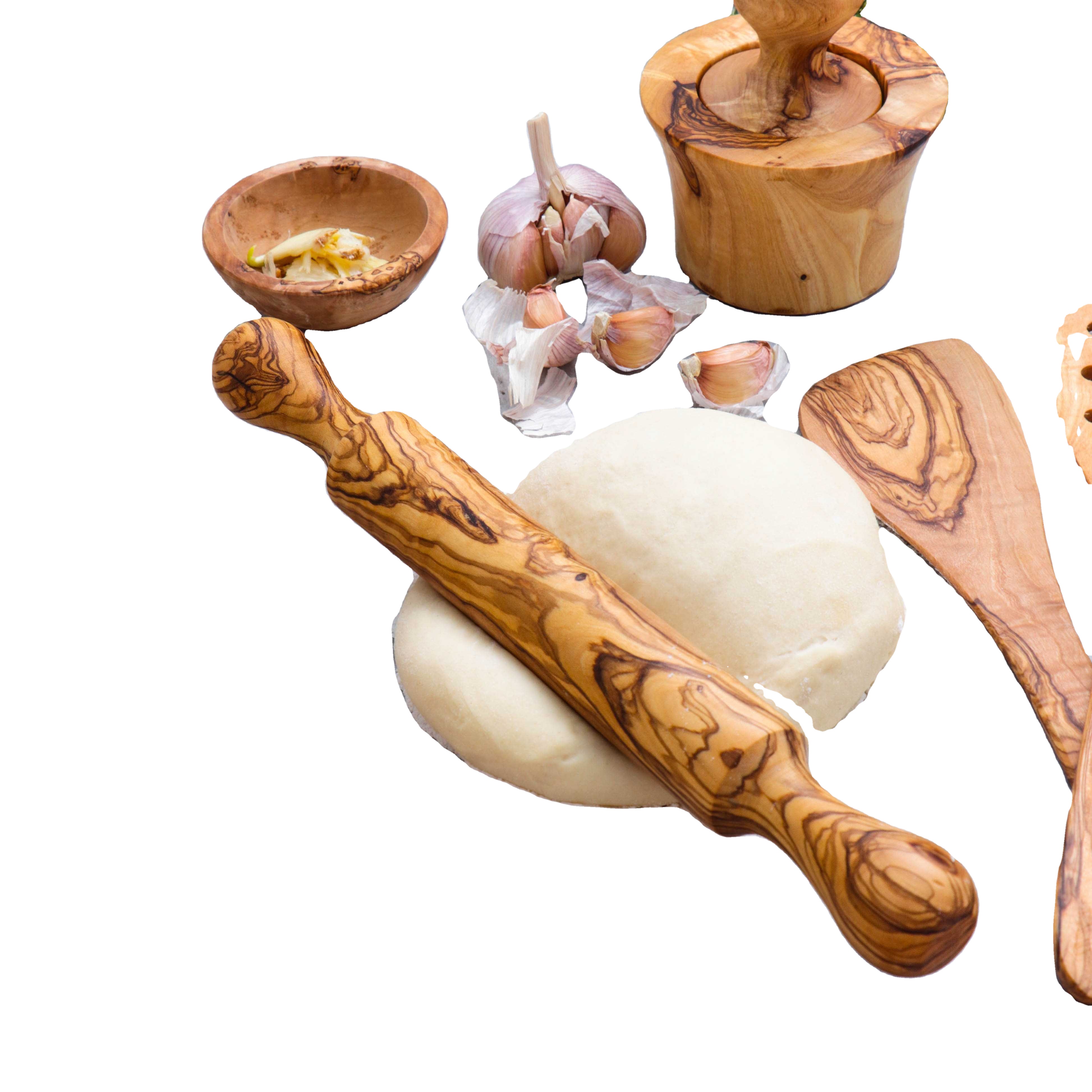 ชุดไม้พายสำหรับทำอาหารในครัวทำด้วยมือไม้มะกอกเป็นมิตรกับสิ่งแวดล้อมชุดไม้พายมุมอย่างยั่งยืนสำหรับอาหารสไตล์การออกแบบด้วยมือ